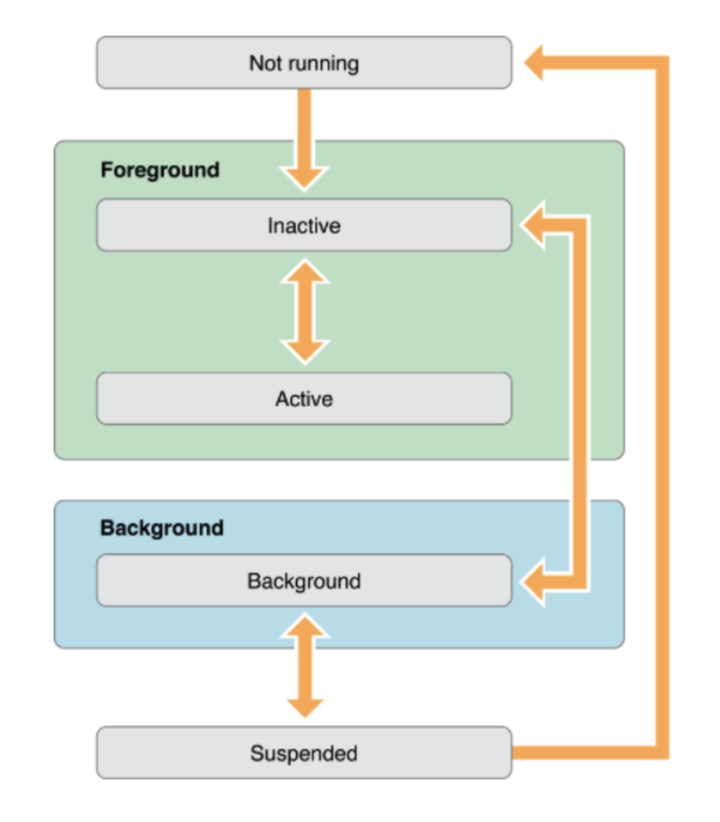 - Background : 앱이 백그라운드에 있으며 여전히 실행되고 있는 코드가 있는 상태