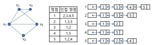 "인접 리스트" 방법은 한 정점의 인접 정점간의 연결정보만을 가지고 있는 List이다.